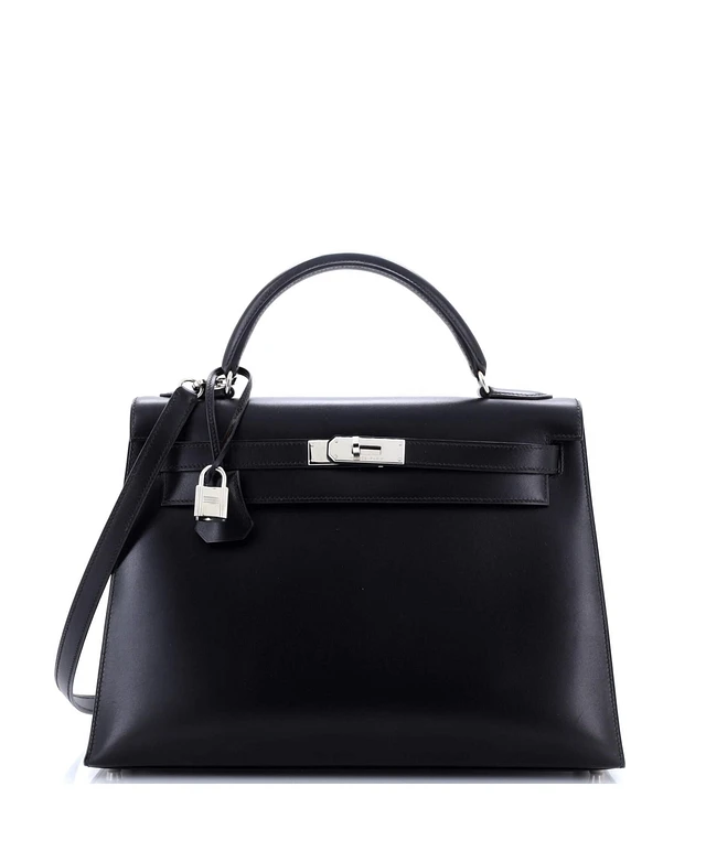 Pre-Owned Hermes Kelly 32 Handbag Black Box Calf with Palladium Hardware