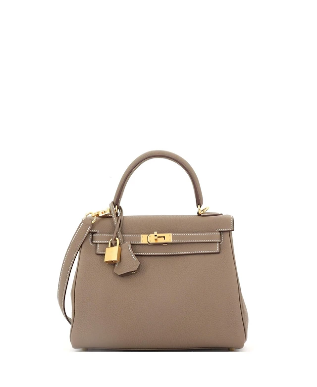 Pre-Owned Hermes Kelly 25 Handbag Grey Togo with Permabrass Hardware