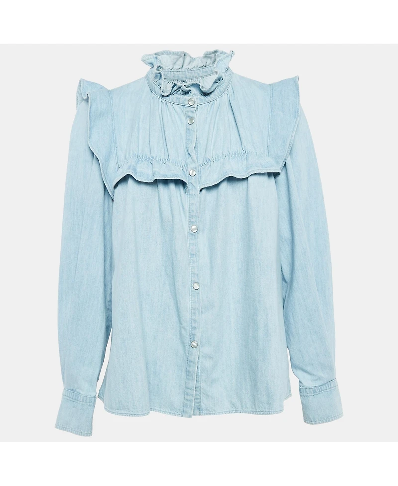 Pre-Owned Isabel Marant Women's Etoile Light Blue Denim Button Front Ruffled Blouse