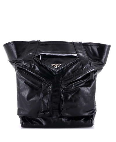 Pre-Owned Prada Tall Triple Front Pocket Tote Leather