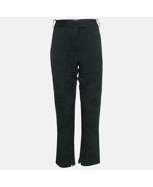 Pre-Owned Salvatore Ferragamo Women's Black Floral Jacquard Lace-Up Trousers