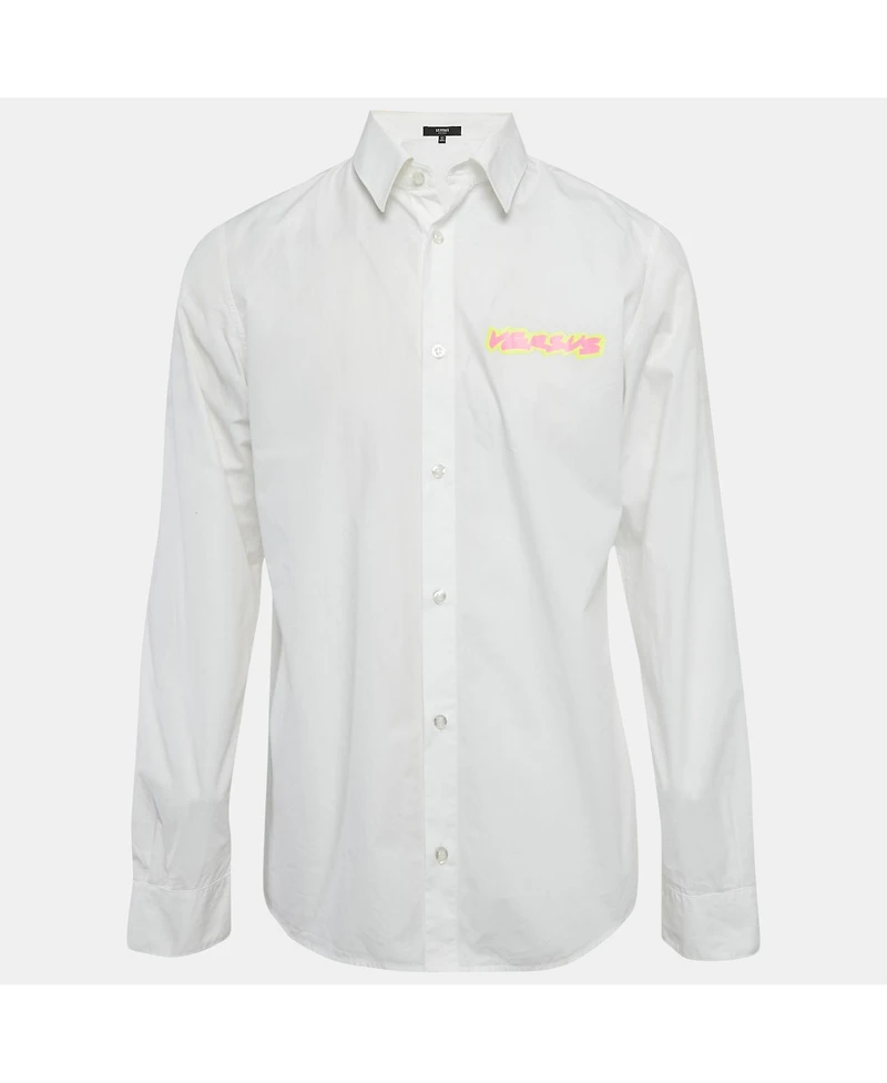 Pre-Owned Versace Men's White Cotton Logo Printed Shirt