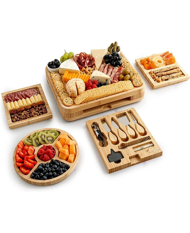 Zulay Kitchen Wooden Bamboo Cheese Board Party Set