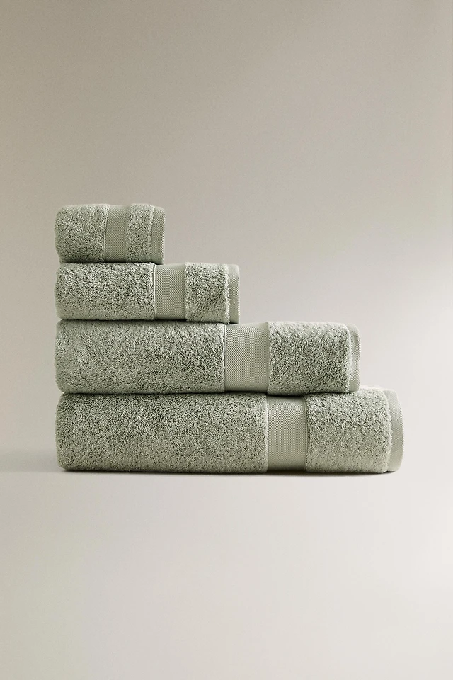 COTTON BATH TOWEL WITH PLEATED BORDER