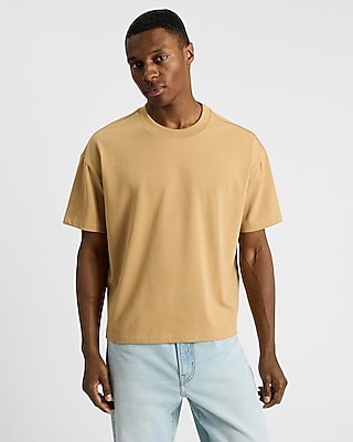 This modern tee is cut in a boxy style with a looser fit. It features premium weight fabric, classic short sleeves and a crew neck.