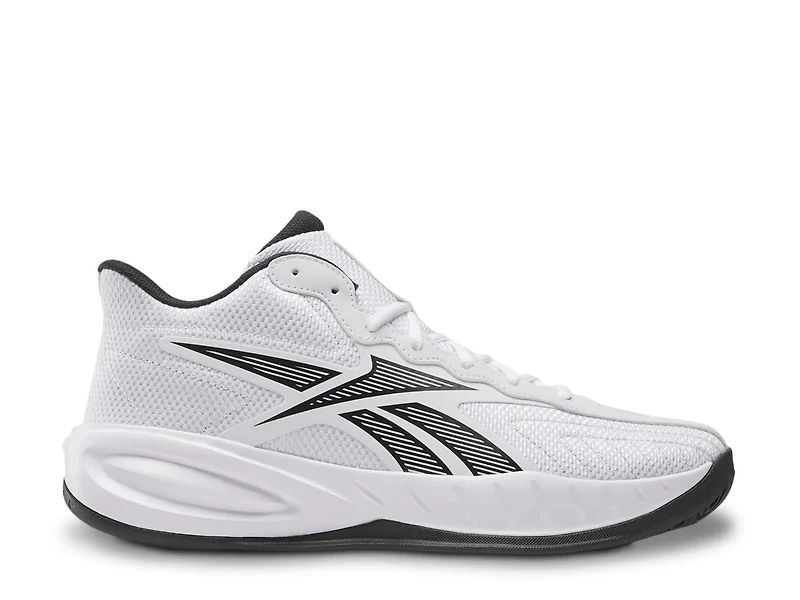 Easy comfort meets bold style in the Press Retro basketball shoes from Reebok. This mid-top pair features a plush padded collar that adds stability, EVA cushioning that absorbs the shock of your steps, and a breezy upper that provides airflow.