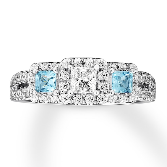 Previously Owned Aquamarine Engagement Ring 5/8 ct tw Princess & Round-cut Diamonds 14K White Gold