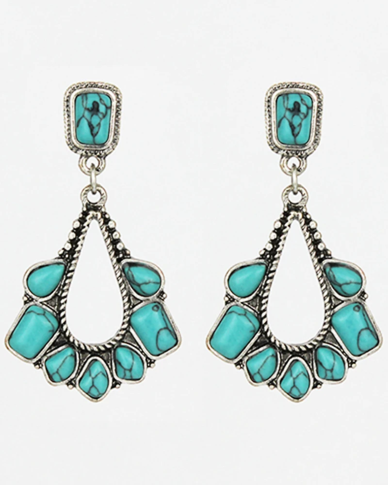 Illuminate your Western charm with the Prime Time Jewelry Women's Silver & Turquoise Stone Chandelier Earrings.