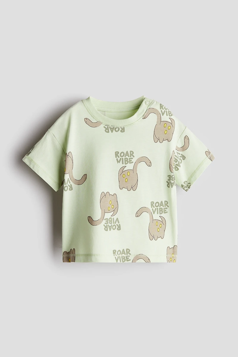 T-shirt in soft cotton jersey with a printed motif. Round, ribbed neck with a snap fastener at one side (sizes 2–4Y without snap fastener) and dropped shoulders.