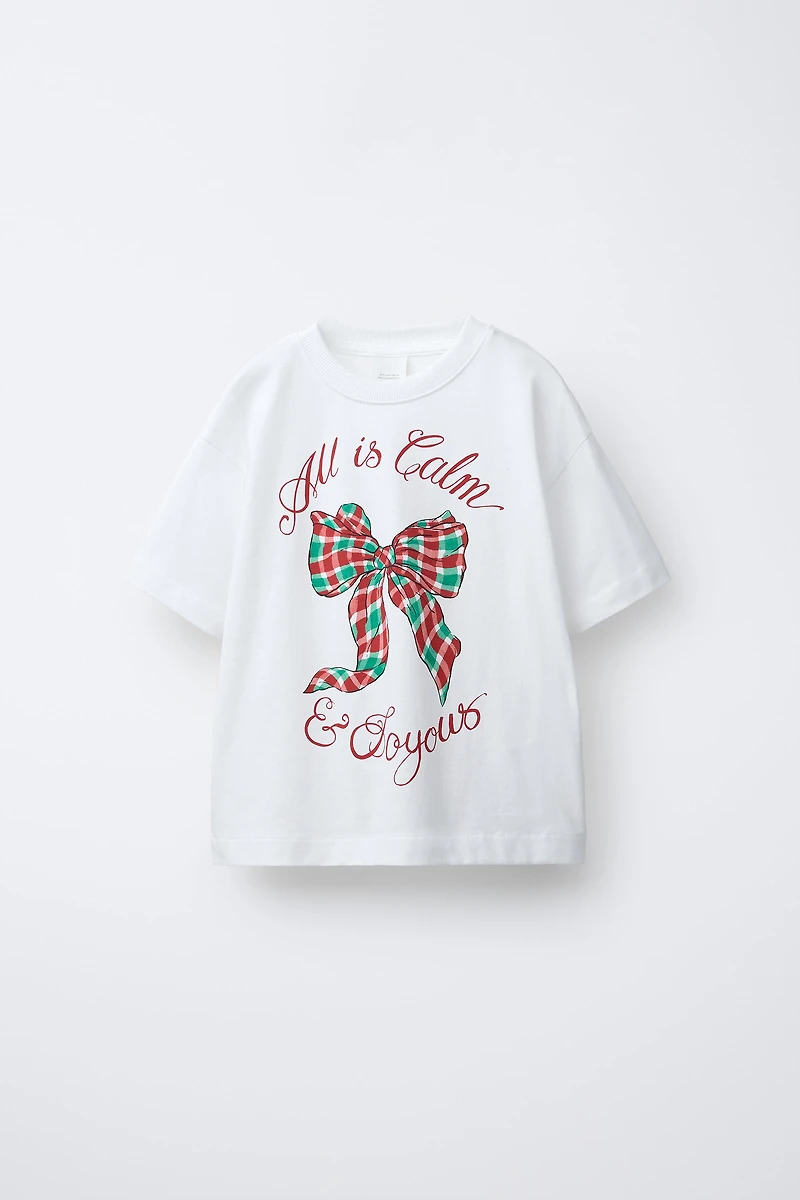 Round neck, short sleeve T-shirt. Front print. 100% cotton fabric.