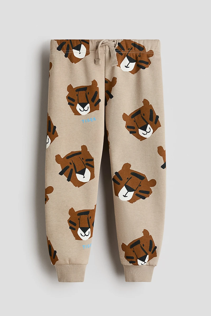 Sweatpant joggers with a printed design. Elasticized, drawstring waistband and ribbed hems.