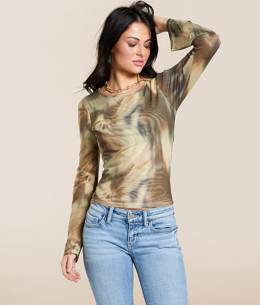 Sheer top Bell sleeves Bust measures 30" on size small Body length 20" on size small