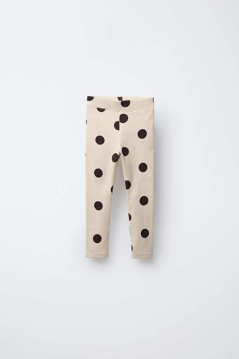 Ribbed leggings with elastic waistband. All-over print. Made from 96% cotton fabric.