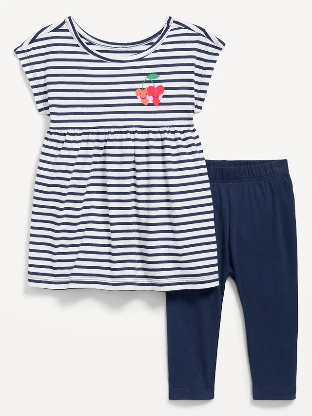 Printed Short-Sleeve Dress and Leggings Set for Baby