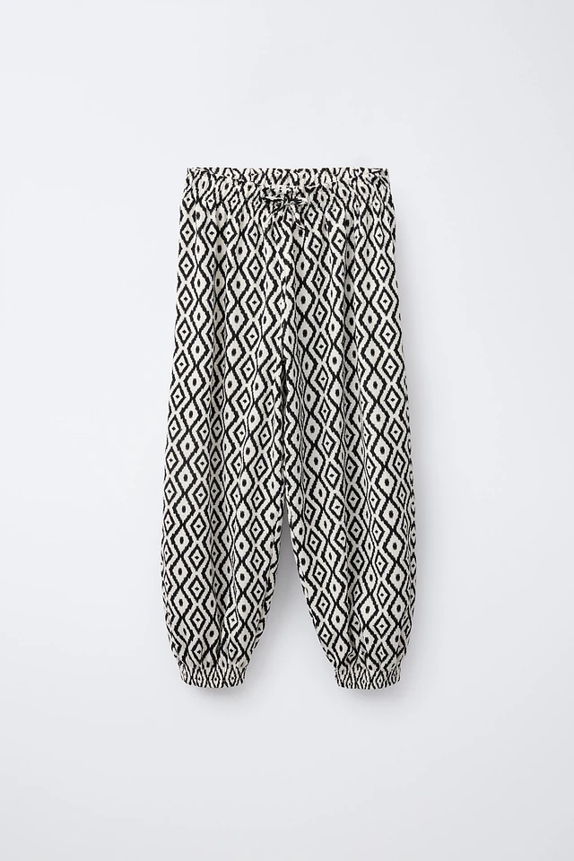 PRINTED TEXTURED BALLOON PANTS