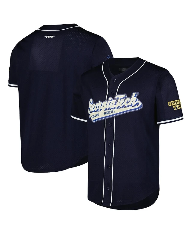 Pro Standard Men's Navy Georgia Tech Yellow Jackets Mesh Full-Button Replica Baseball Jersey