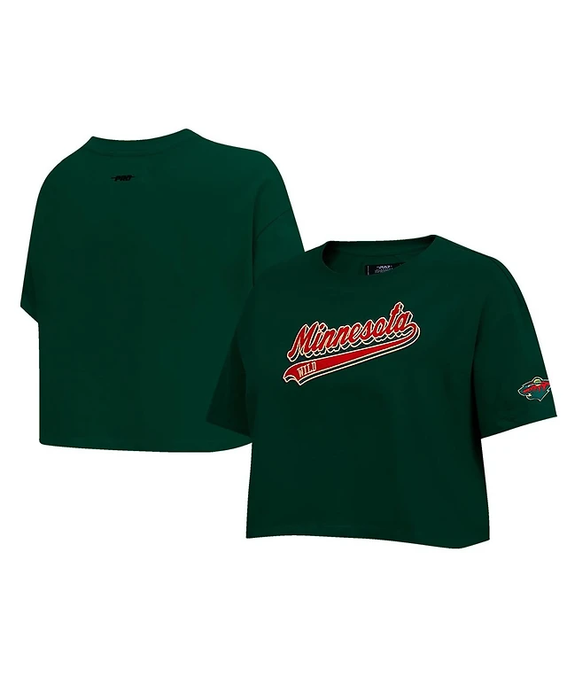 Pro Standard Women's Green Minnesota Wild Boxy Script Tail Cropped T-Shirt