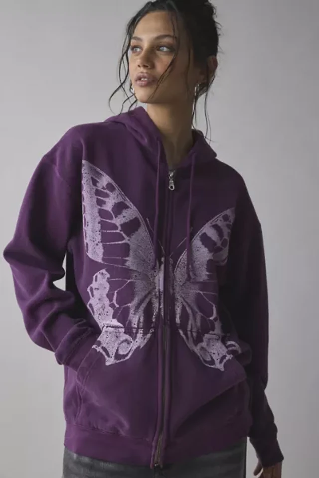 Project Social T Butterfly Graphic Zip-Up Hoodie Sweatshirt