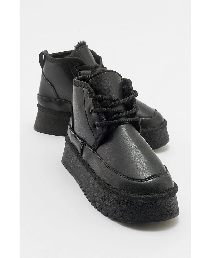 A stylish lace-up sport boot with a chunky sole and plush faux-fur lining, offering both comfort and contemporary flair.