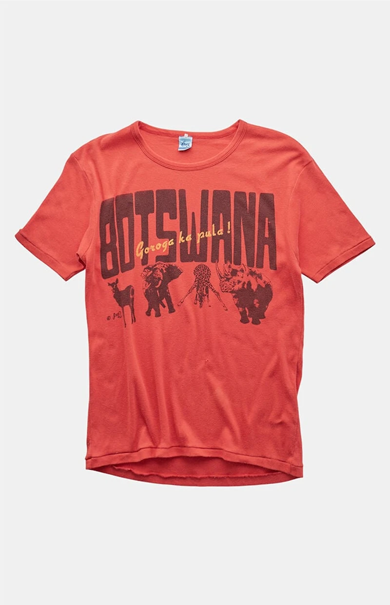Relive the past in this 80s Bostwana Graphic T-Shirt. This vintage graphic t-shirt features short sleeves and a front graphic.