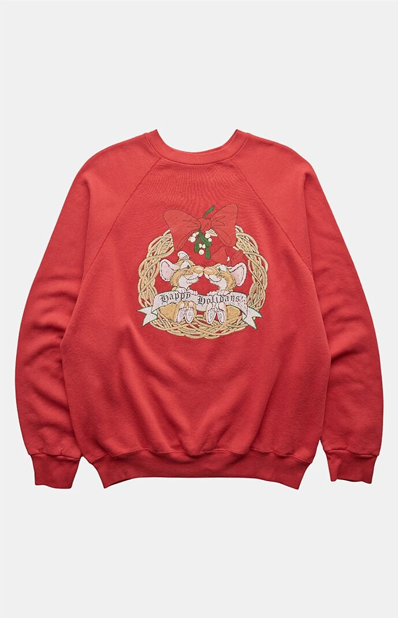 PS VINTAGE 80s Happy Holidays Mice Crew Neck Sweatshirt