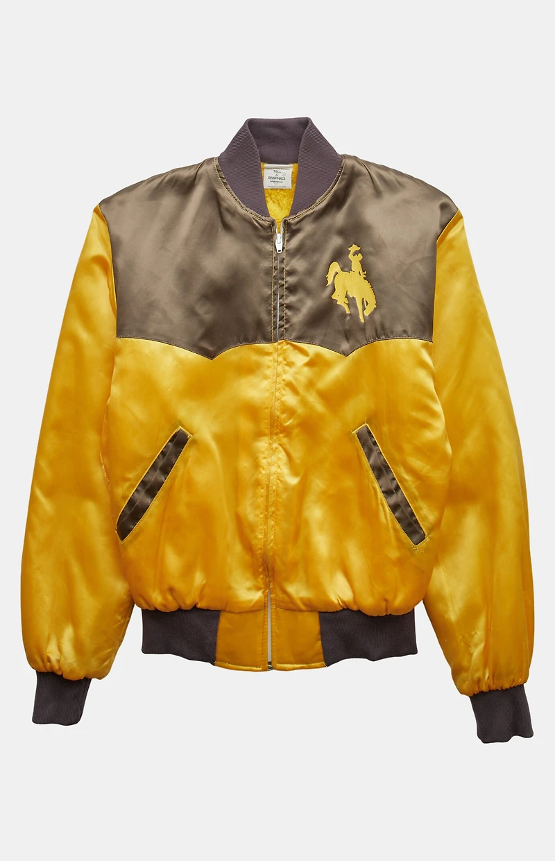 Relive the past in this 80s Table Rock Bar Wyoming Jacket. This vintage jacket features long sleeves, a mock neck, and a front and back graphic.