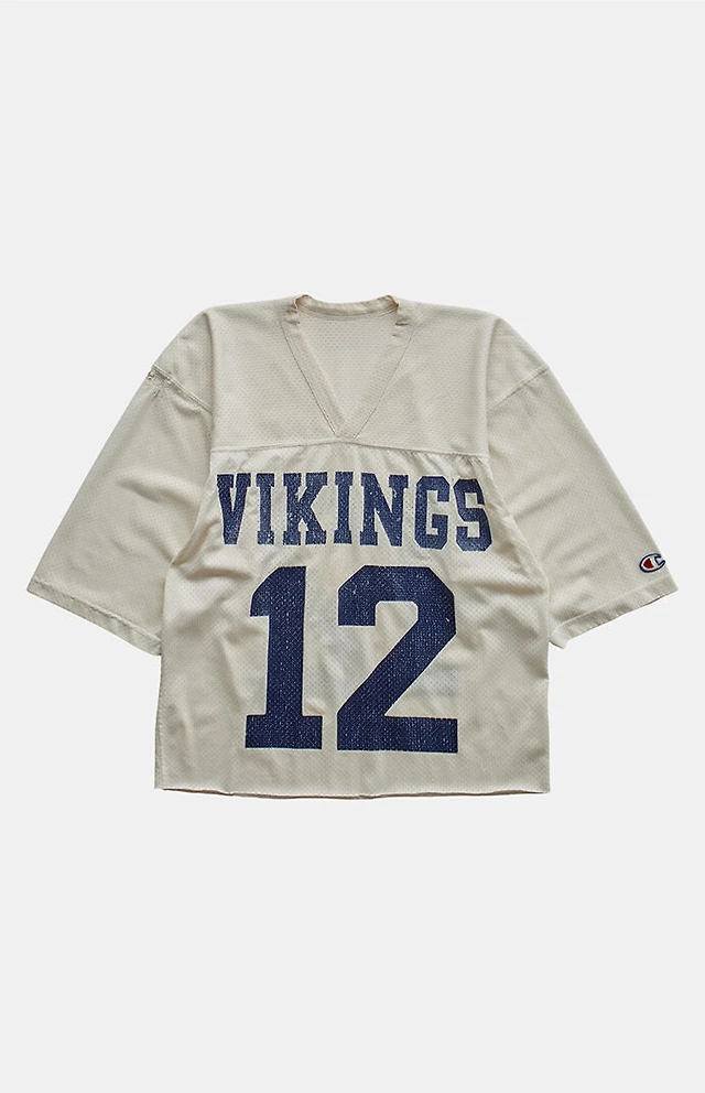 PS VINTAGE '90s Vikings Jersey V-neck Cropped Graphic Top