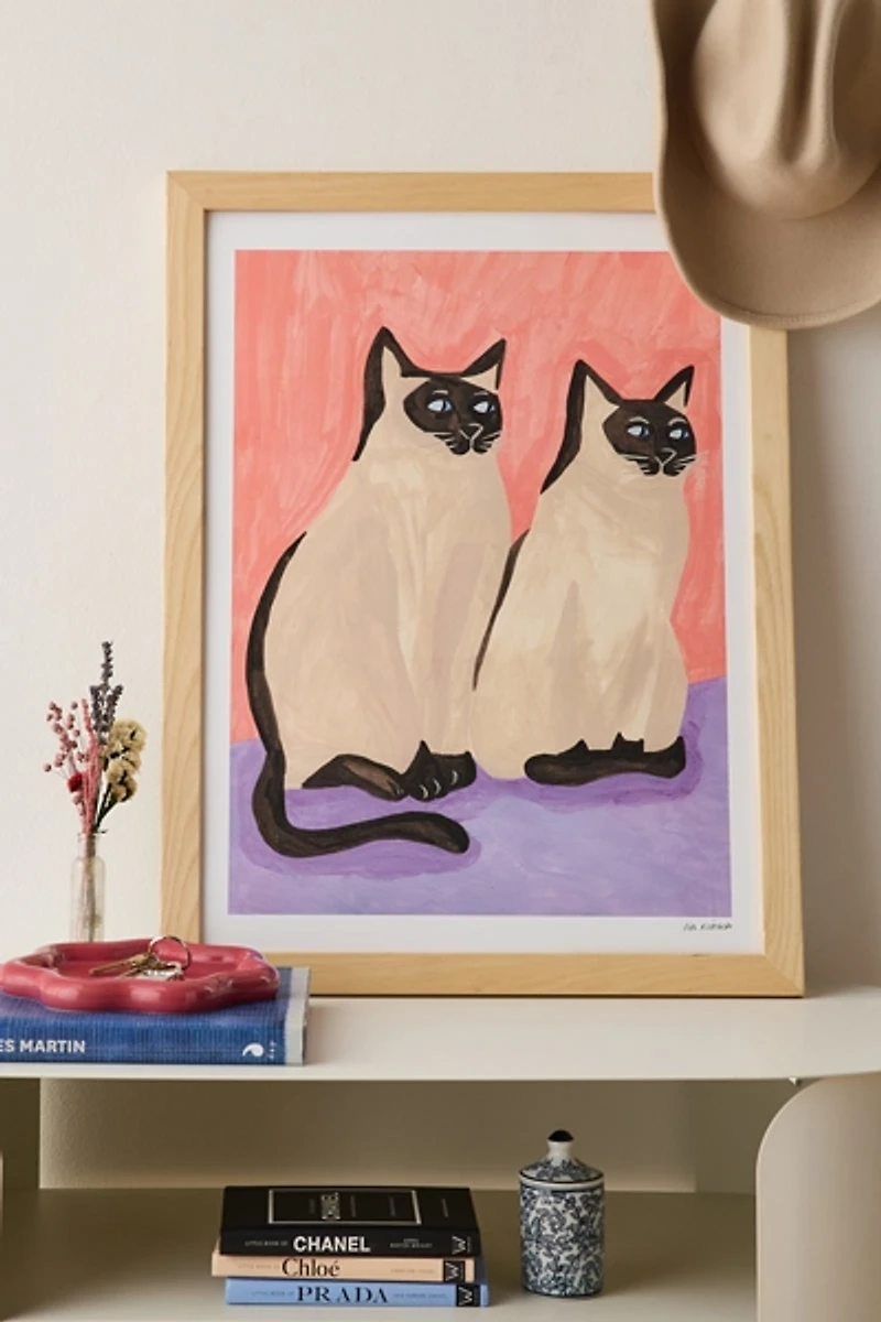 Art print by Iga Kosicka for PSTR Studio featuring a pair of Siamese cats. Printed on archival paper made from cotton pressed in Italian mills, this high-quality art print is available in sizes just right for your space.