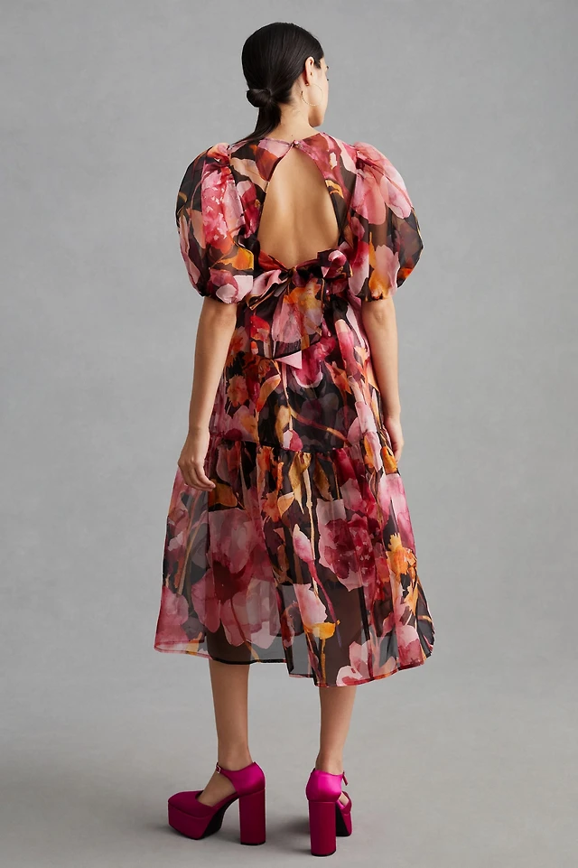 Hutch Puff-Sleeve Ruffled Midi Dress