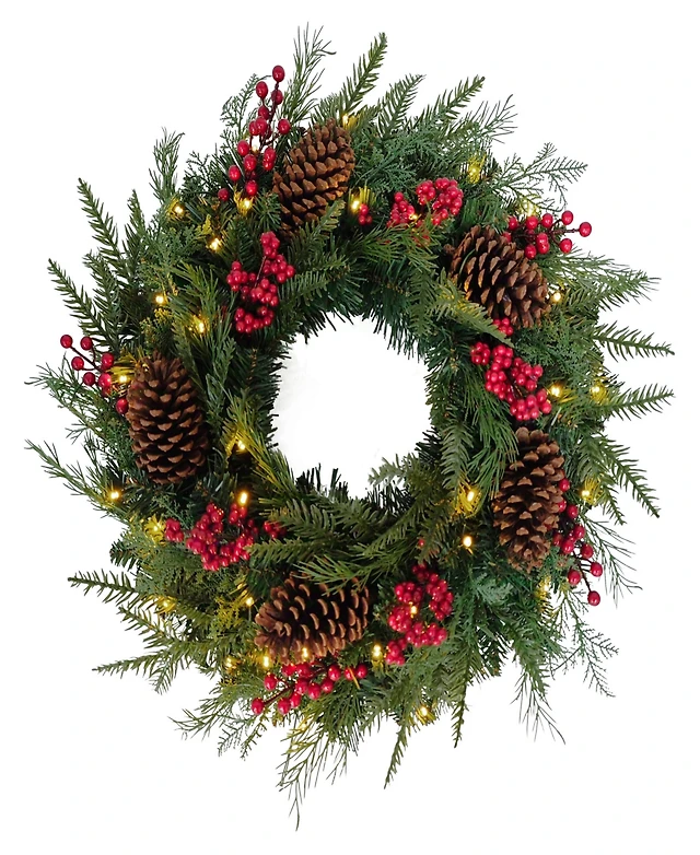 Puleo 24" Pre-Lit Adorned Battery-Operated Wreath