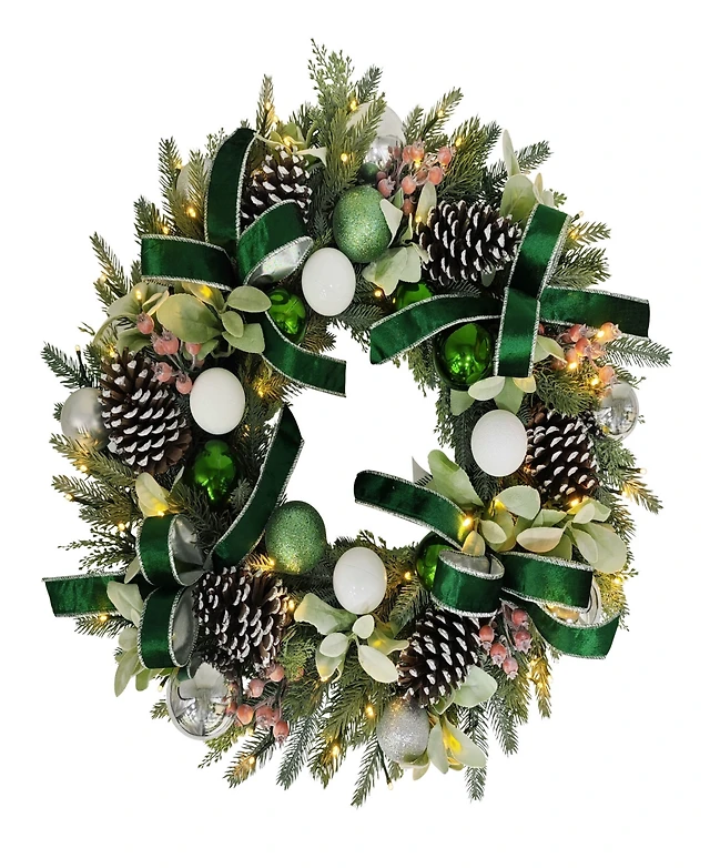 Puleo 26" Pre-Lit Artificial Adorned Christmas Wreath