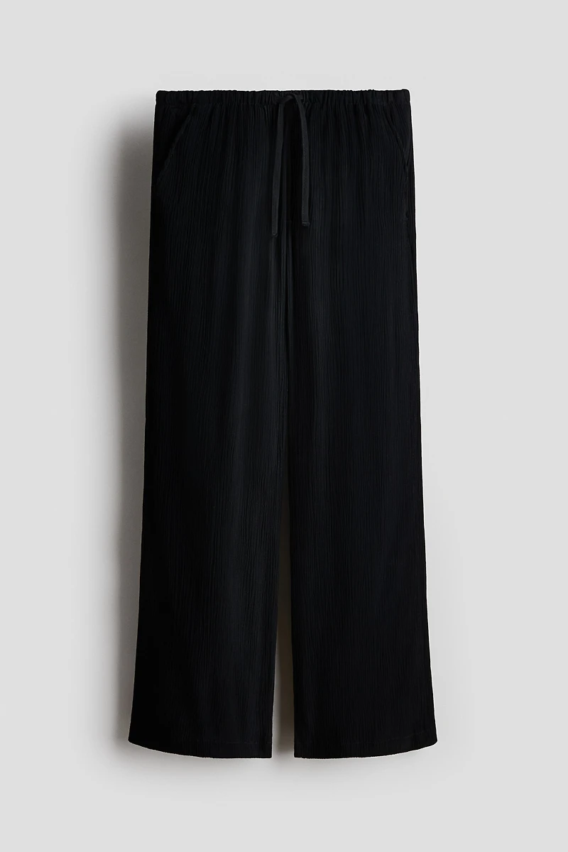 Relaxed-fit, easy pull-on pants in woven fabric with an elasticized, drawstring waistband and diagonal side pockets.