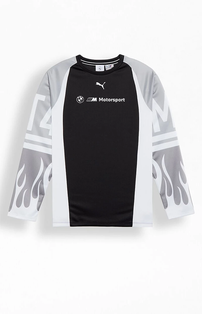 Fire up your fit with the BMW Lifestyle Long Sleeve Jersey from Puma. This street-ready piece features bold flame graphics down the sleeves, a black-and-white paneled design, and signature BMW M Motorsport and Puma logos across the chest for a high-performance look with racing DNA.