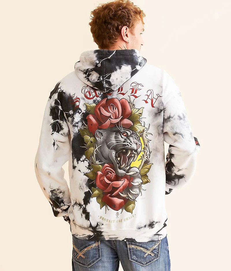 Graphic crystal wash fleece lined sweatshirt Sleeve hit Front pouch pocket