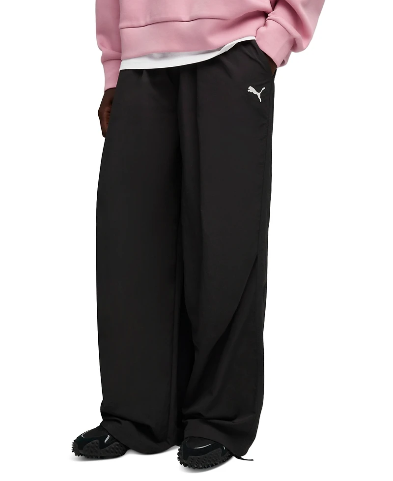 Urban attitude defines these Puma wardrobe essentials, oversized parachute pants featuring a drawstring waistband for personalized comfort. A relaxed profile enhances ease, while adjustable hems allow versatile styling. Contemporary design supports expressive movement.