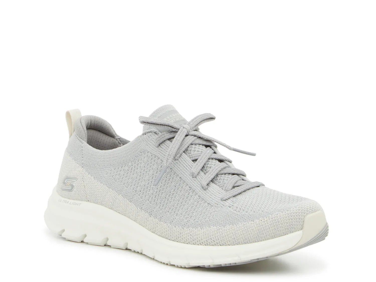 Enjoy comfort and style combined in the Skechers Pure Flex slip-on sneaker. This sleek pair sports Air-Cooled Memory Foam® cushioning for extra support and a Stretch Fit design that ensures a secure fit. The decorative laces give you the style of a lace-up with the convenience of a slip-on.