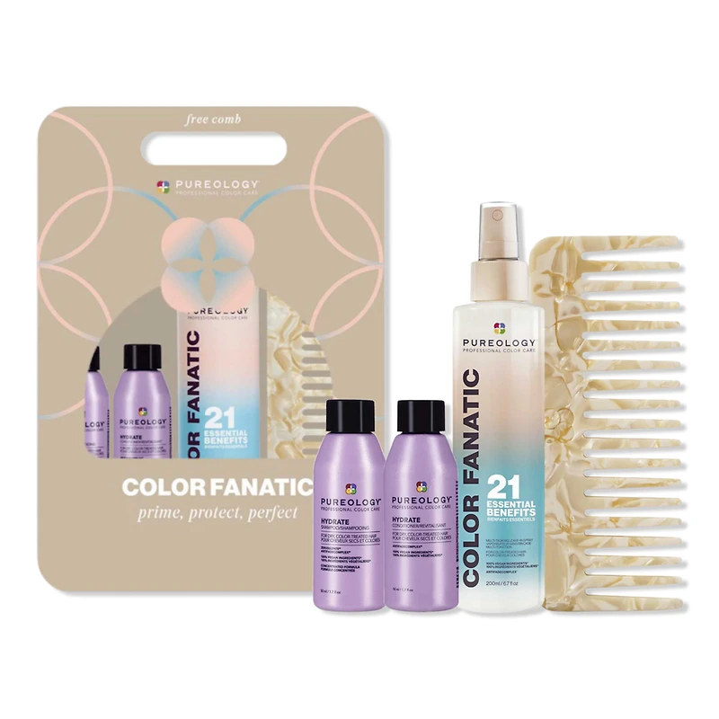 COLOR FANATIC KIT 200SZ. Benefits: Cleanses, hydrates, and refreshes. Protects against heat and damage. Provides extraordinary color protection. Formulated Without: Sulfates SLS and SLES. Parabens. Formaldehydes. Formaldehyde-releasing agents. Phthalates. Mineral Oil. Retinyl Palmitate. Oxybenzone. Coal Tar. Hydroquinone. Triclosan. Triclocarban. Contains less than one percent of synthetic fragrances. Includes: Hydrate Shampoo (1.7 oz). Hydrate Conditioner (1.7 oz). Color Fanatic Multi-Tasking Leave-In Conditioner (6.7 oz). Detangling Comb.