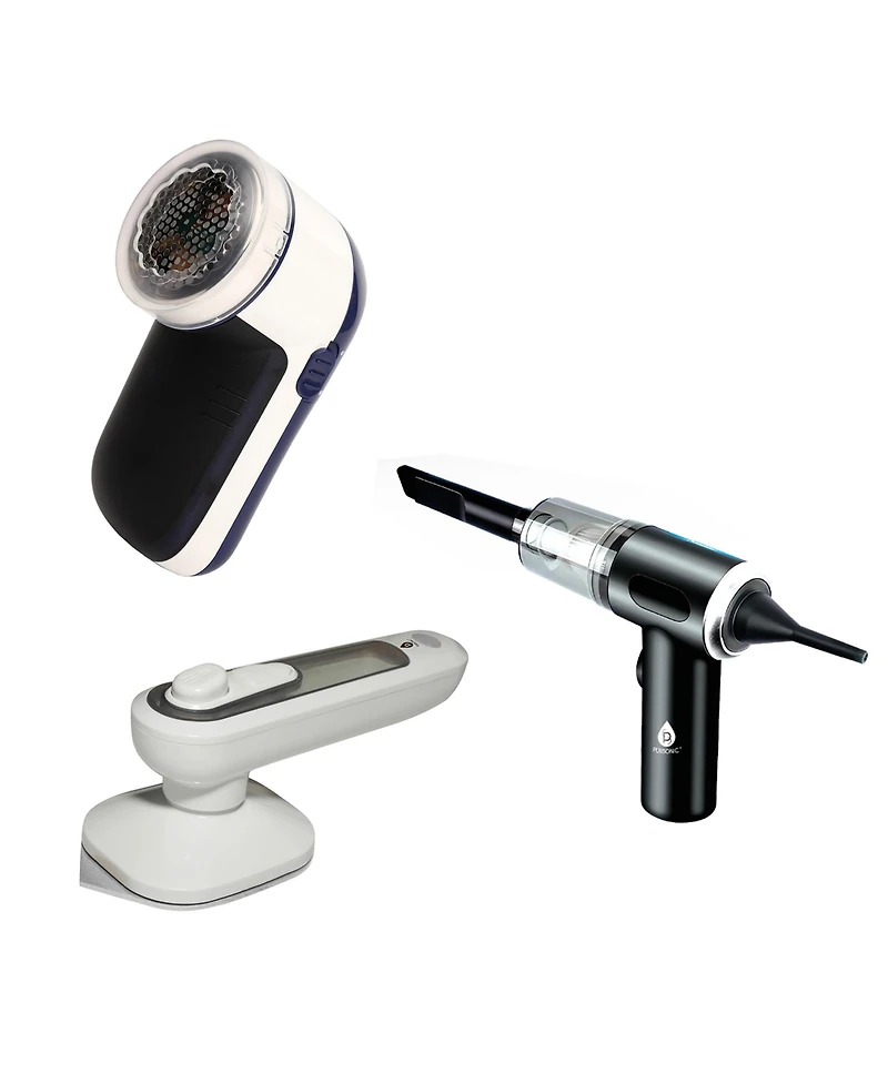 Upgrade your lifestyle with our Modern Maintenance Trio. Whether you are a frequent flyer, a tech enthusiast, or a proud homeowner, these three powerful tools are designed to keep your clothes, electronics, and living spaces in pristine condition.