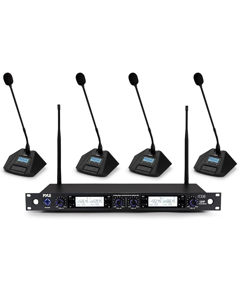 Pyle 4-Channel Wireless Microphone System with Professional Desktop Mics