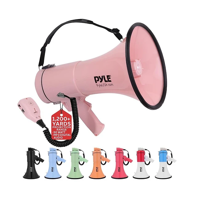 Pyle 50-Watt Portable Megaphone with Siren, MP3 Input, Automatic Siren, Shoulder Strap, Lightweight