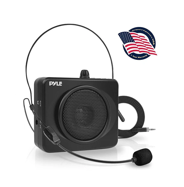 Pyle Compact Portable Pa System with Headset Microphone, Rechargeable Battery, and MP3 Playback (Black