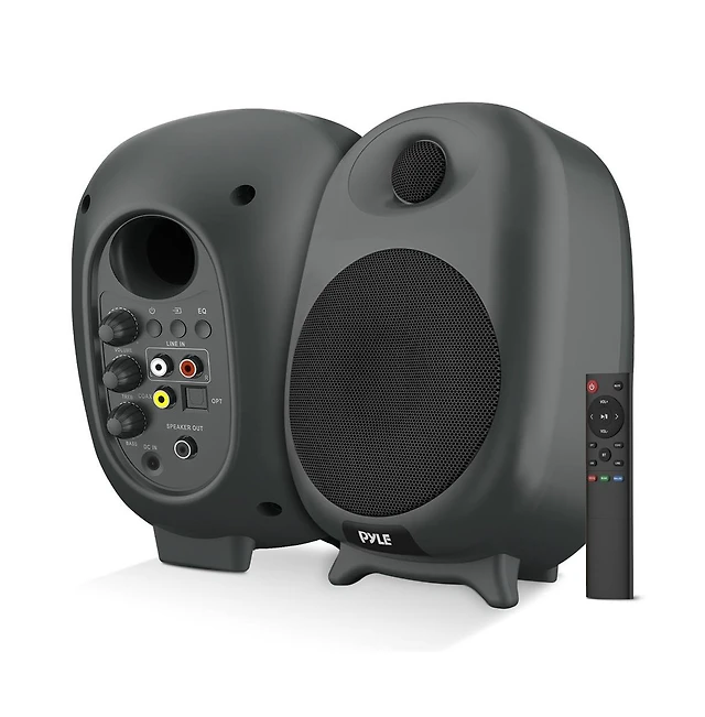 Pyle Hi-Fi Bluetooth Desktop Bookshelf Speakers with Remote Control and Optical Cable (60W)