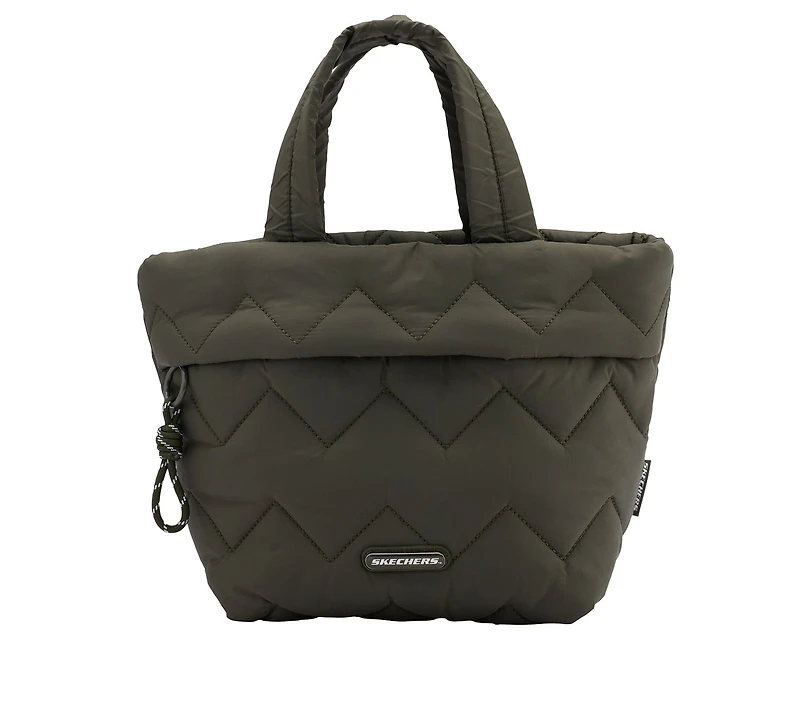 Carry your essentials in monochromatic style with a cozy twist wearing Skechers Quilted Mini Tote Bag. This shoulder bag has a zipped main compartment and features quilted large scale chevron weave detail, an internal zipped security pocket, and quilted top handles.