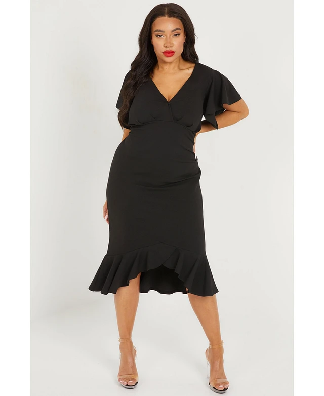 Quiz Plus Scuba Crepe V Neck Midi Dress