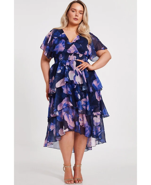 Quiz Plus Size Front Wrap Midi Dip Hem Dress