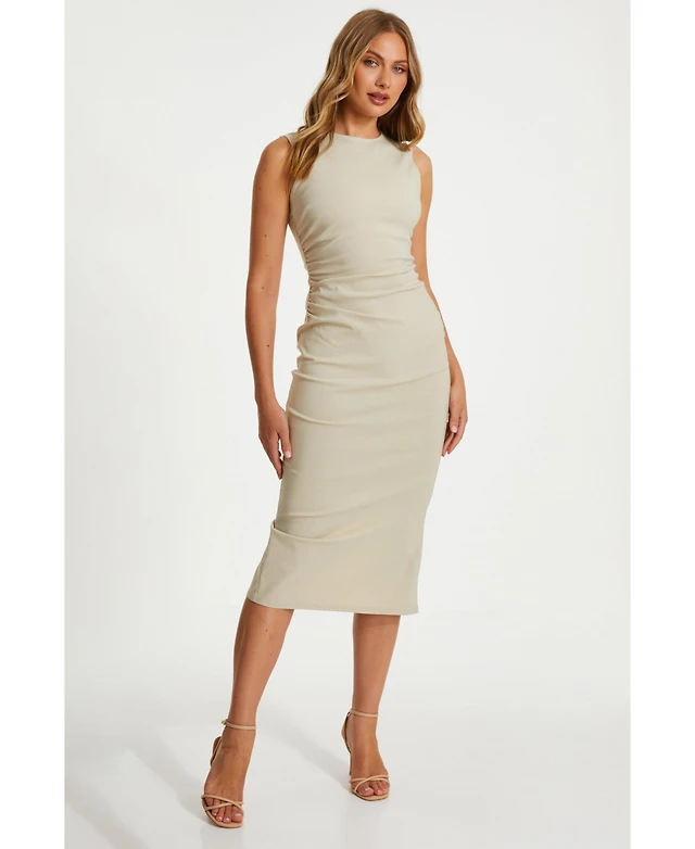Quiz Women's Bengaline Round Neck Ruched Waist Midi Dress
