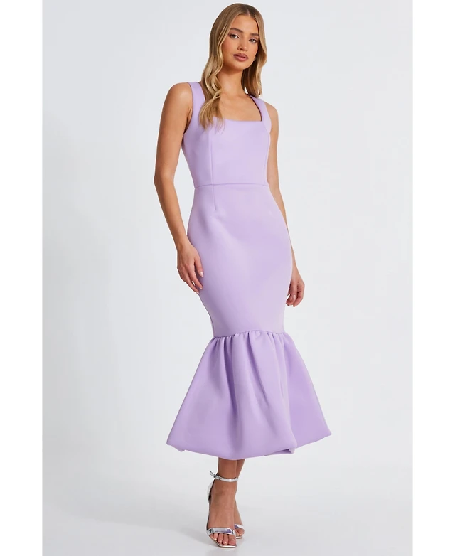 Quiz Women's Scuba Foam Square Neck Bubble Hem Maxi Dress