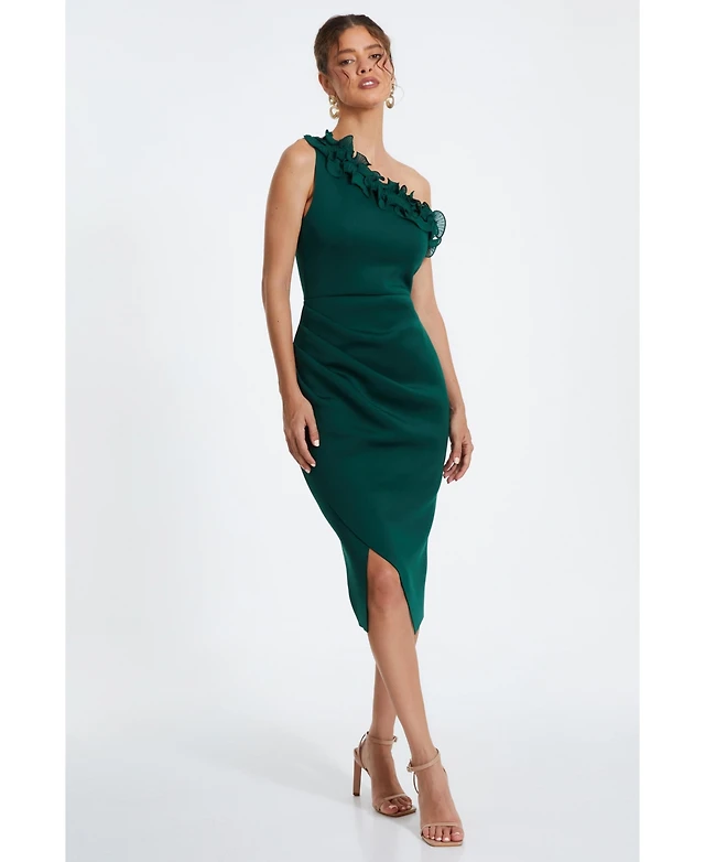 Quiz Women's Scuba One-Shoulder Trim Ruched Midi Dress