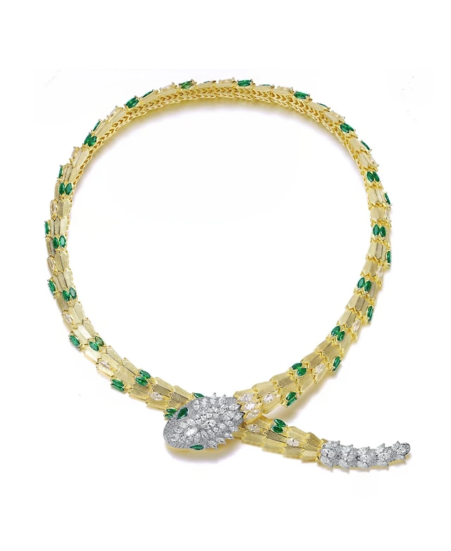 Rachel Glauber 14K Gold Plated with Green Cubic Zirconia Snake-Inspired Collar Necklace