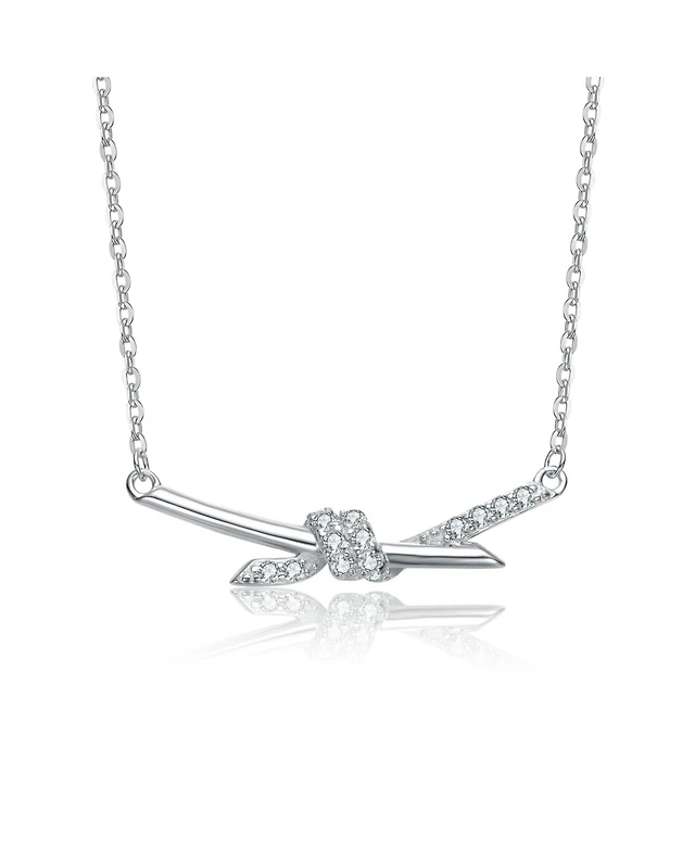 Rachel Glauber White Gold Plated with Clear Cubic Zirconia Heartbeat Bar Necklace